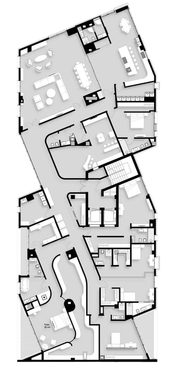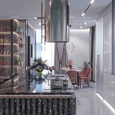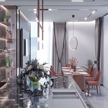 Step into the lap of luxury at our latest creation a sprawling 650 m2 penthouse near Tirana's zoo. This meticulously designed space effortlessly marries style and functionality, featuring a sophisticated palette of white, gray, and green marbles, accentuated by the warmth of wood, leather, and silk. Every aspect of this residence has been carefully curated, from the choice of materials to the placement of bespoke furnishings.