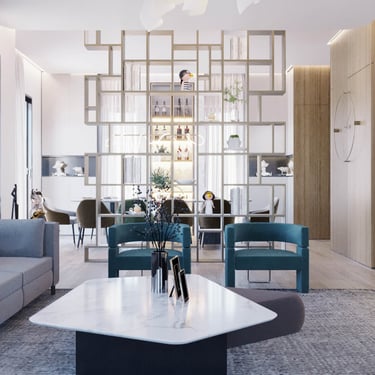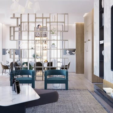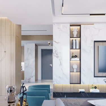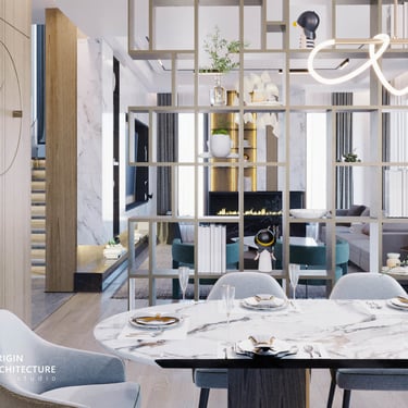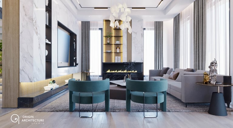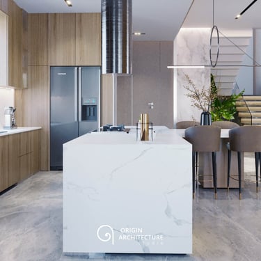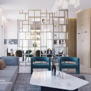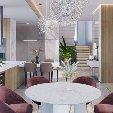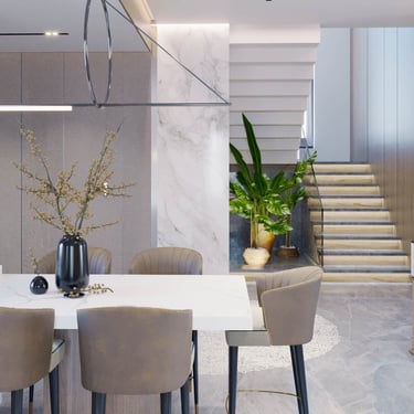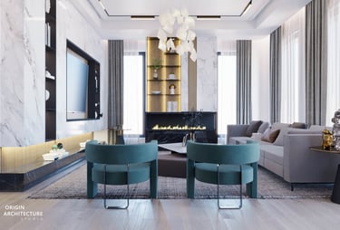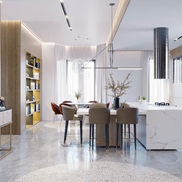 Step into the refined first floor of a villa in Lundër, Tiranë 120 m2 of pure elegance. This space encompasses a salon, living room, dining area, and a spacious kitchen seamlessly integrated. The carefully chosen palette features the opulence of green, the warmth of brown, and the regal touch of gold. In this sanctuary, marble, wood, and fabric create a tactile and visually stunning experience. The project transcends aesthetics, embodying the art of living where comfort and style intersect effortlessly.