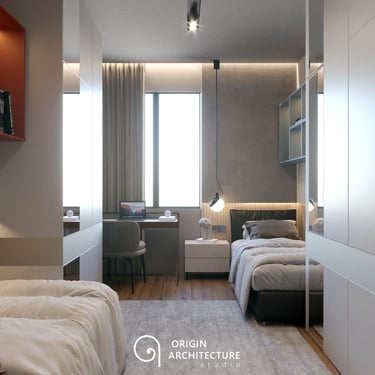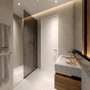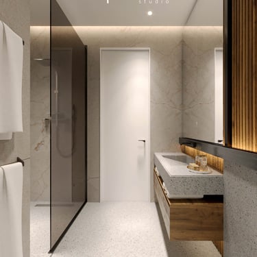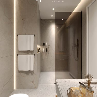 Step inside a world where each design choice is deliberate. The apartment's palette soothes with earthy and pastel tones, crafting an ambiance of serenity. Materials intertwine to offer both tactile pleasure and visual delight. However, it's the lighting that steals the show—a choreography of brilliance that transforms each space. From kitchen to rooms, this apartment radiates the essence of Shkoder, where form and function, light and comfort, coalesce into a harmonious living experience.